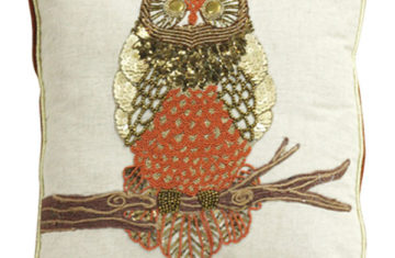 beaded owl Pillow – 18x18cm – orange